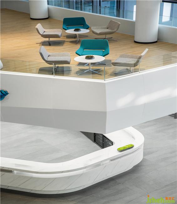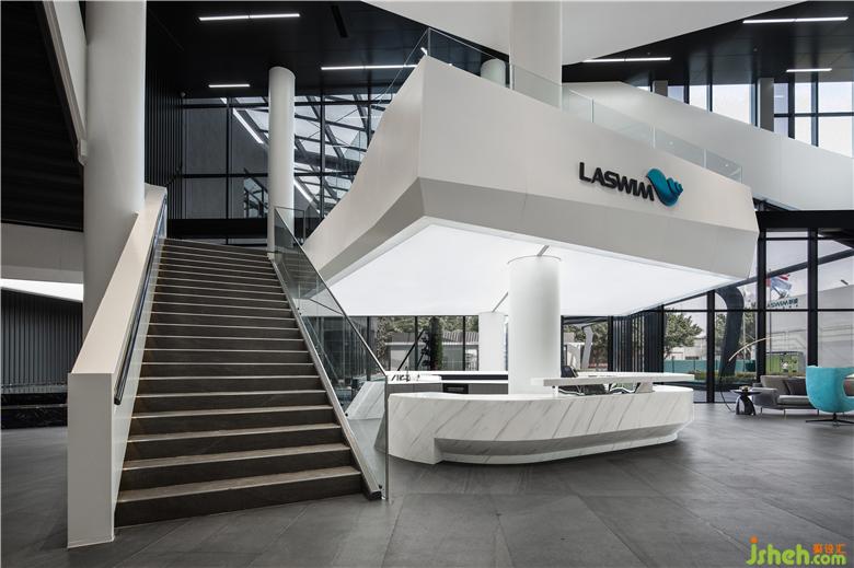色系提取威浪士企业的VI色——湖蓝色,基础上给予视觉上的补充和优化,建立企业形象统一。办公室设计