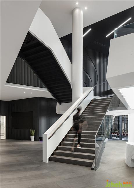 展厅墙面加入流线的元素来诠释。代表了水看无边无际的特性,使得空间更具生动。