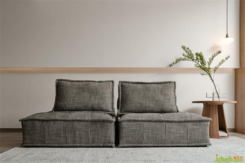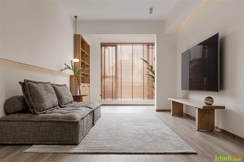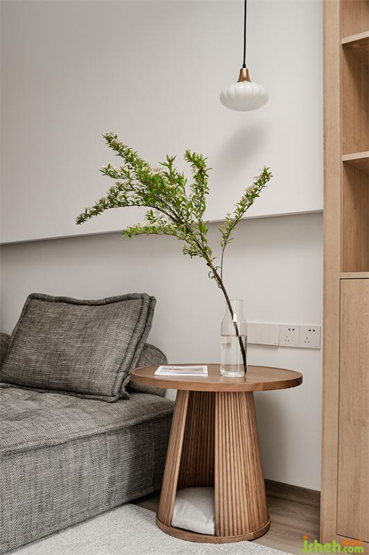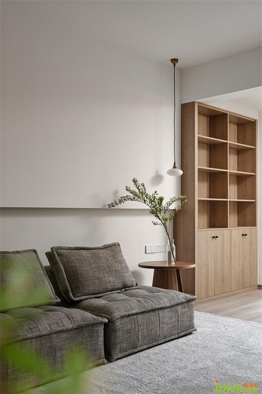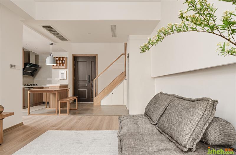 保留原楼梯位置,但改为木楼梯。整个挑空区采用日式的留白艺术,加上原木楼梯的木色点缀,一个干净自然的区域由此而生。