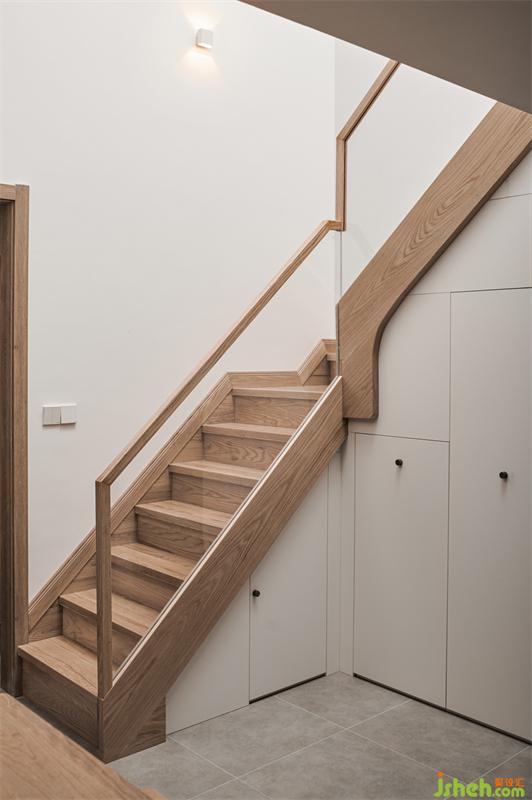 楼梯下方的空间也利用了起来,形成超强收纳区,抽拉式的鞋柜,两边都可利用。