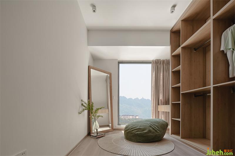 主卧的一旁是独立的衣帽间,开放式的衣柜拿取方便,超大的穿衣镜彰显品位,每个女孩梦中的衣帽间就在此处。