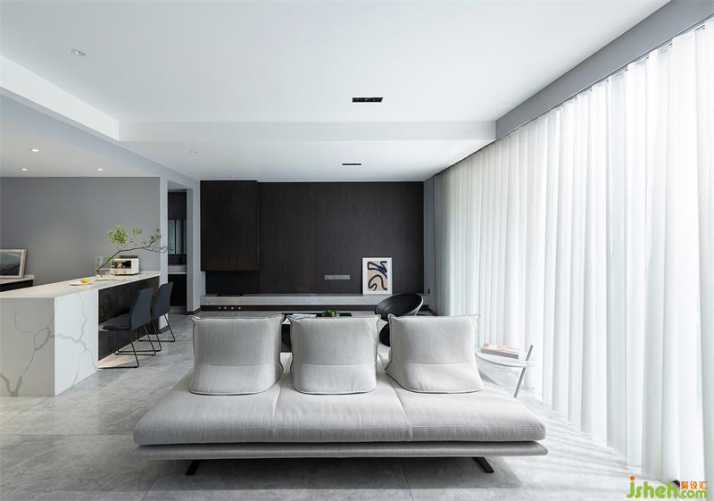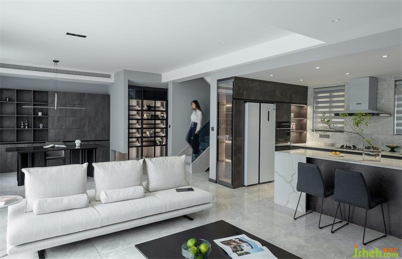业主是位企业高管,平时工作都很忙碌,每次回家都是深夜,所以在整个设计的调性上都是采用灰色调,让整个空间的安静。