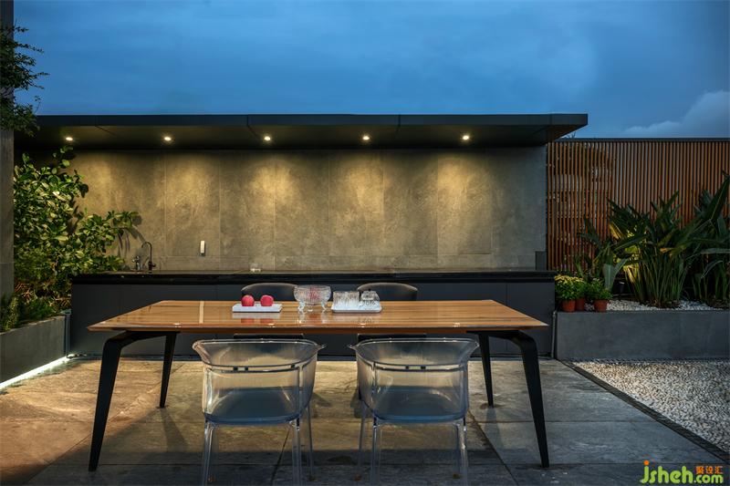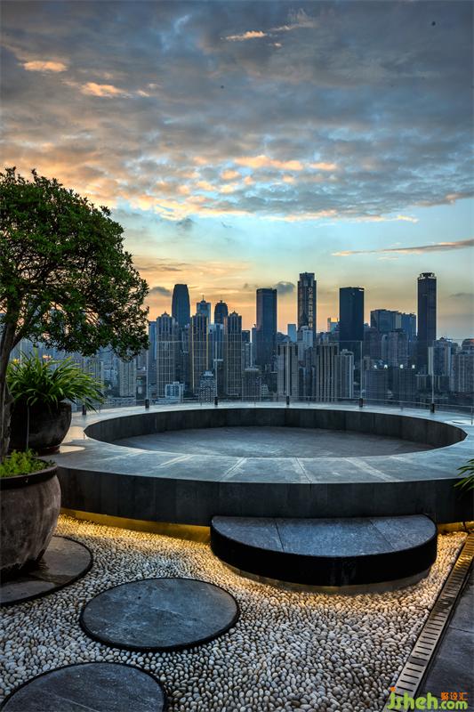 三层超大的屋顶花园在天气晴好的时候,可以开派对,BBQ,江对岸就是重庆这座城市闻名世界的夜景名片, 在此处可以一览无余。