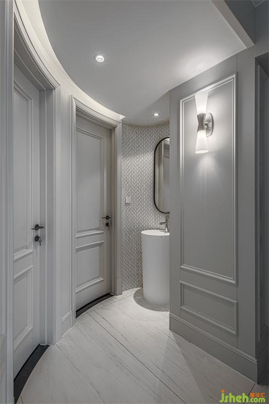 二层空高4.2米,用于社交(动区),超大玻璃窗的开放式厨房和极佳视野的特色圆形餐厅,令人过目不忘;大气的会客厅,可开可合的电动隐藏式电视墙,下方液晶屏是一个融合了多媒体播放,电子相册,声控等智能控制终端,全屋智能化可以语音控制电动窗帘和灯光,暖通新风的开启。