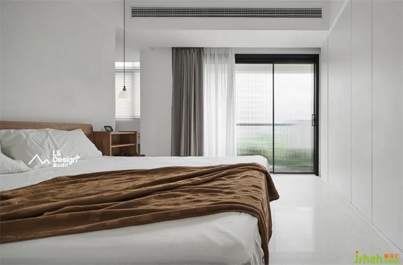 主卧整体空间留白处理,没有赘余,留给未来业主的新婚生活,来充实这个幸福的空间。雅致简谱中跳跃着一种无法言喻的灵动,滑门采用长虹艺术玻璃三联动,窗外绿景透过玻璃散发隐隐约约的朦胧美。