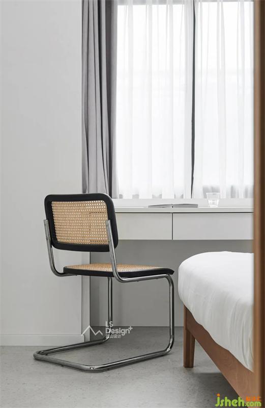 卫生间皆为灰色的素雅砖,次卫采用分离式,公区不会因为洗漱变得卫生间使用紧张。次卧延续整个房子调性设计,简洁干练。