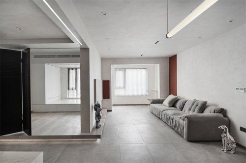休闲空间在窄长的过道空间的对比下更加宽敞