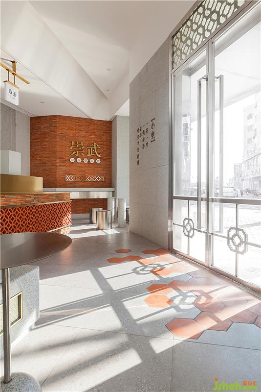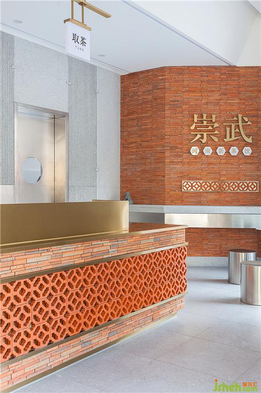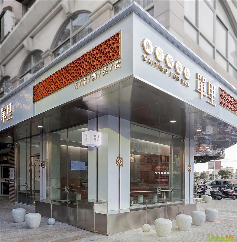 单里(在闽语语中是“等你”的意思)立足闽南本土,为闽南新式茶饮的新品牌。泉州餐饮设计室内红砖墙面上精致复古的黄铜字——“崇武”二字,点明了空间所在地为闽南崇武小镇。