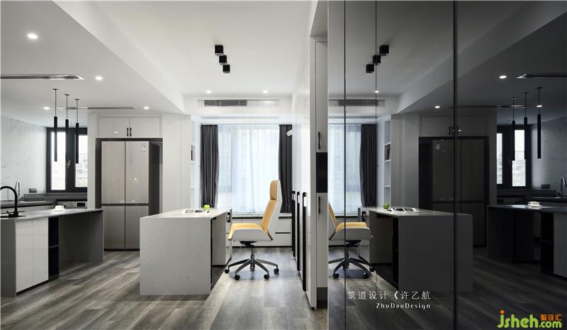 整体色彩上以黑白灰为主调,局部运用跳色,使整体色调明亮,体现“素颜”之美,在空间改造上利用空间的相互穿插,让空间更有趣味性。
