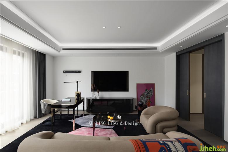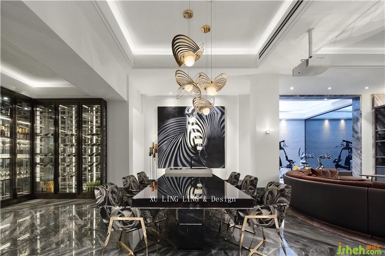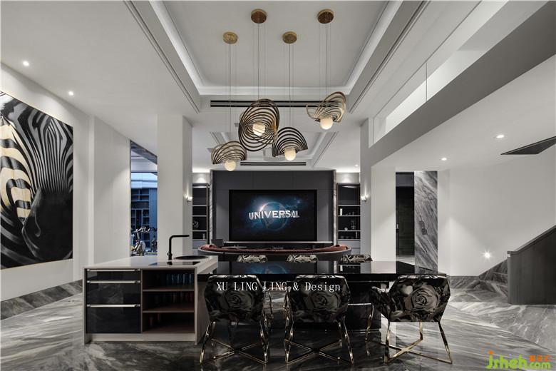 本案是两套联排别墅打通的户型、业主是三口之家,一对事业有成的夫妻和
