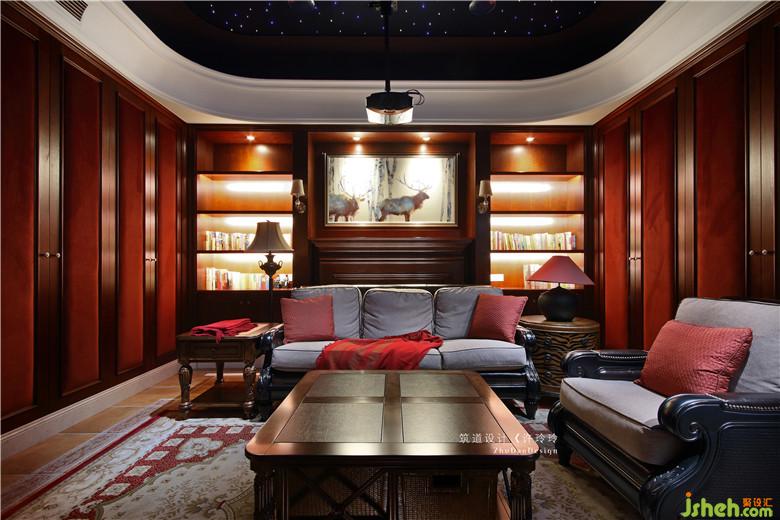 楼梯被置于空间中心,让客厅和餐厅的空间更为独立完整,加强了空间的纵深感和通透感。而一隅的休闲书吧,把窗外的风景收纳其中,独辟幽静,既适合冥思、阅读,又适合与好友共度下午时光,品茗叙旧。别墅装饰