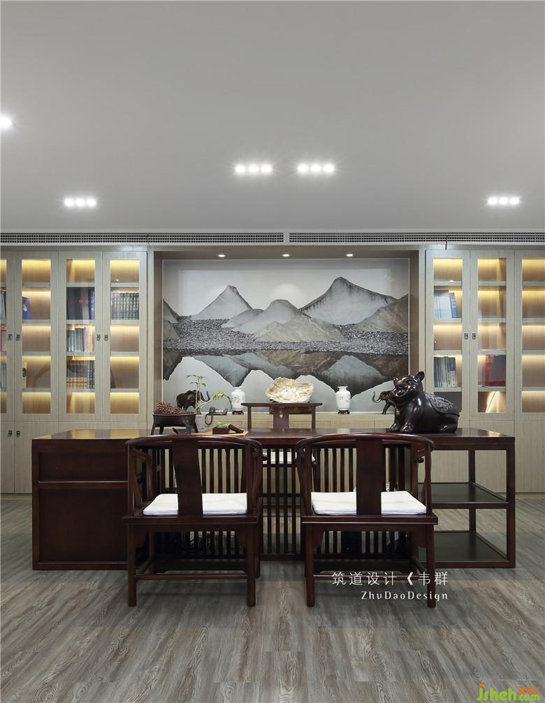 浅胡桃收纳柜配以典故装饰画,质朴内敛,毫不出彩,却构建了古典与现代的桥梁。