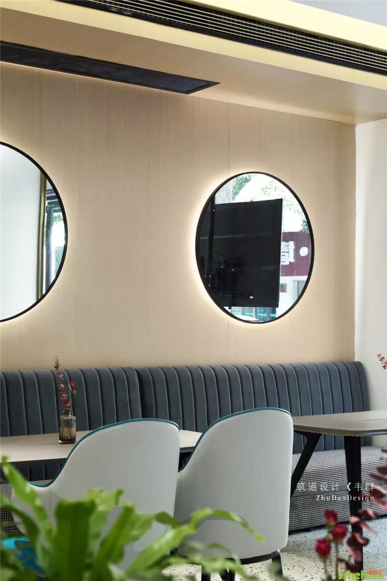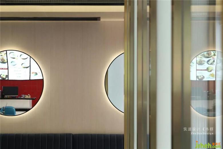 入户是夹丝玻璃的半透明隔断,保护客户用餐隐私的同时,却又不完全地隔断空间,让空间拥有连续性。