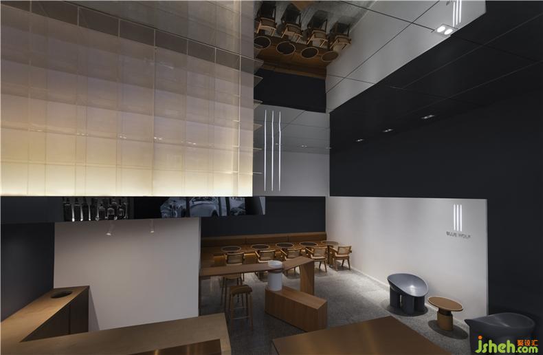 As a perfect guide, the aroma of coffee enticed Ms C to walk through a downstairs tree-lined street of the central business building, and in the corner at the end of the street is where she found a shop - named Blue wolf.酒吧设计