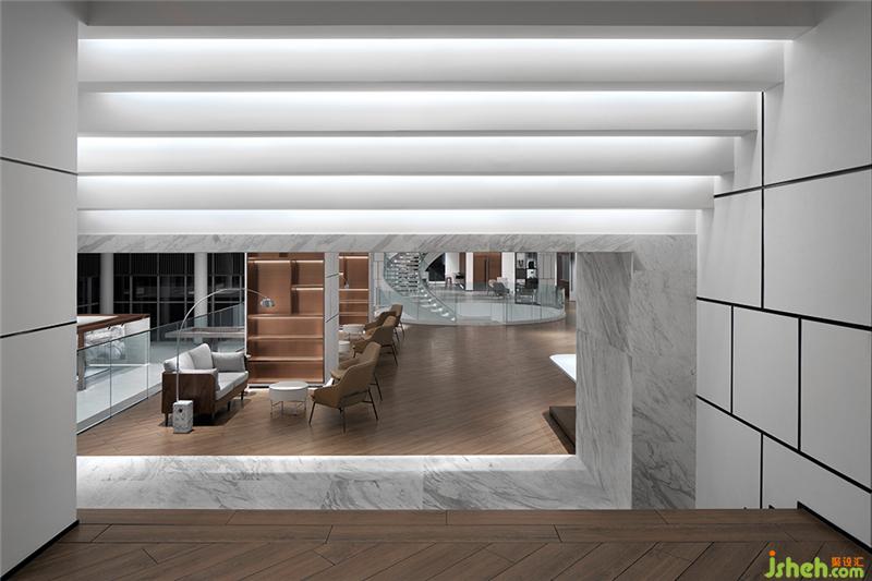 From architecture, curtain wall, structure and interior, to home furnishing, soft decoration, multimedia system, Hihope Zhu's design practice permeates all aspects of the project field. In facade design, the facade walls between the second floor and the first floor were removed and built indoor curtain walls instead (sheet spray shop, overhaul shop and customer restaurant). The entire atrium space from the ground to the ceiling has no redundant shelters, so that the atrium with a height of 7.5 meters shows an sense of transparency and space like an auditorium and cars of all series are presented in front of customers.