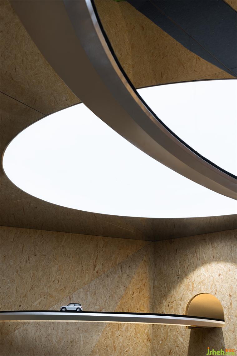 “我们在设计前期就需要模拟汽车在展厅中挪动的模型是否与跑道相冲突,以及如何让跑道在展厅里‘自由’且不影响汽车动线也是设计思考的难点之一。”