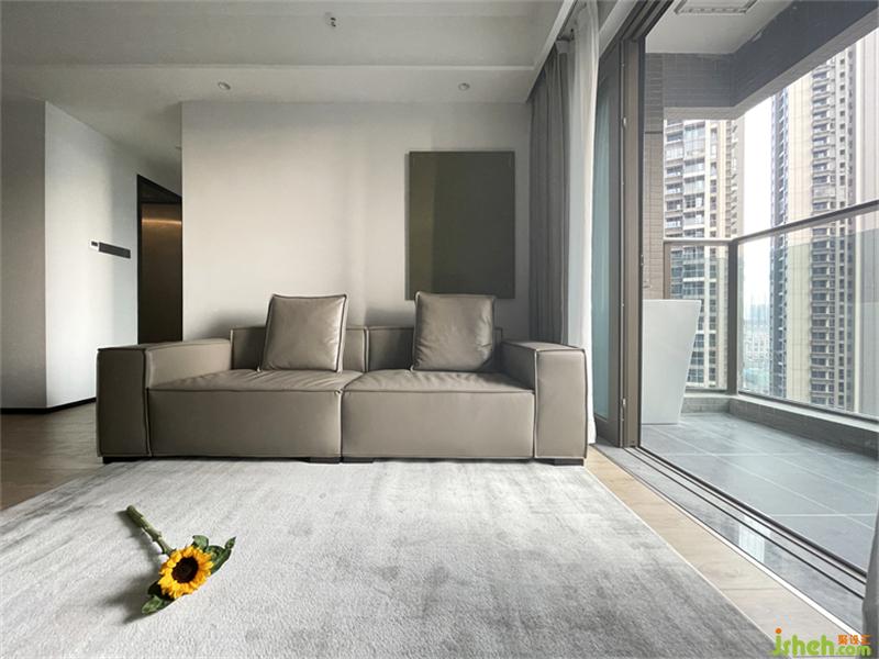 •客餐厅-整体方正动线流畅,如能将阳台封进来更完美,大厅的设计里室内设计设计师运用简约、当代的手法布局,借以保持空间的动线流畅。家具、软装选用与空间色调相一致的黑白灰,不打破空间的干净、简洁,仿佛留白,让人保持一种更加松弛和平静的状态。