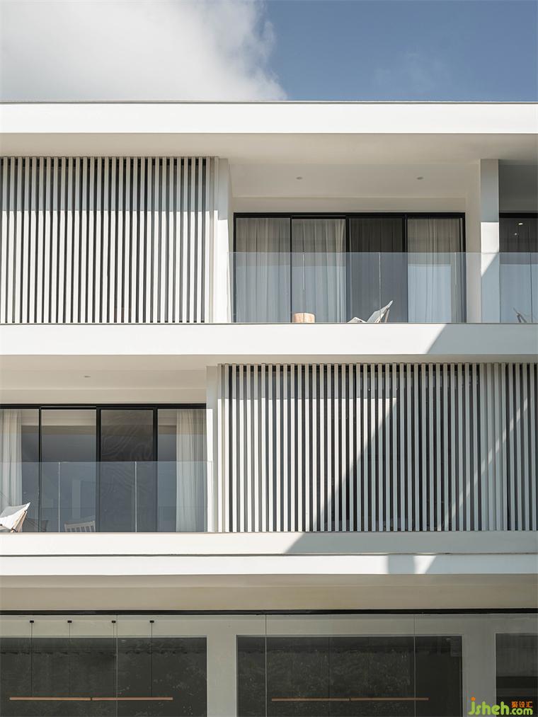 光影的生成与变化,形成一种“实”与“虚”、“硬”与“软”的间隔之美,酒店设计使其展现出一种精神性的内涵。不断变换的虚实光影消除了建筑带来的压迫感,水波粼粼,安然而处。