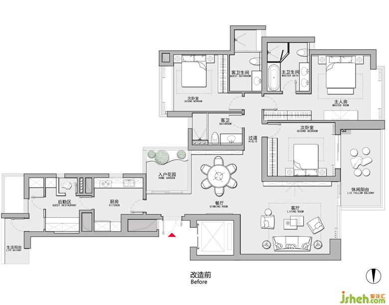 3. 结合屋主实际情况,舍弃原本次卧卫生间,将该空间合并到主卧,变为衣帽间,扩大主卧空间及收纳。