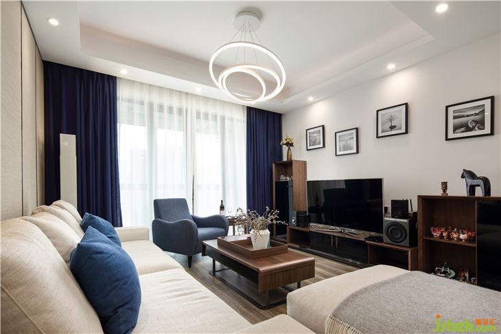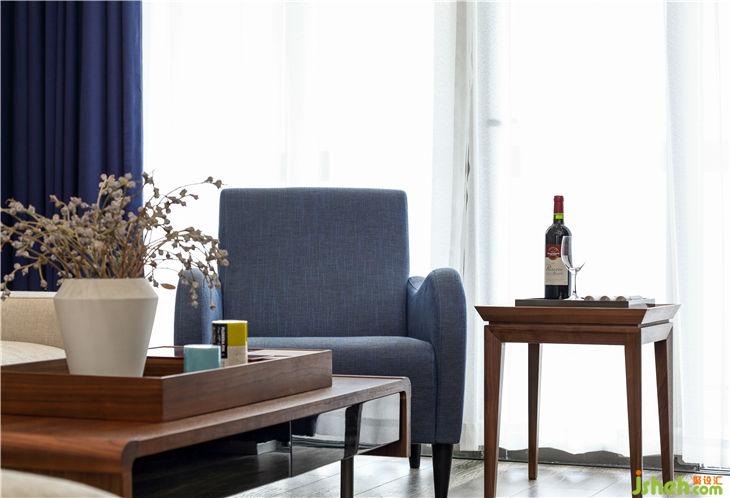 客厅:蓝色的抱忱,单人沙发和窗帘遥相呼应,统一中又有些许变化。设计公司