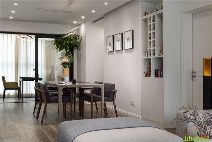客厅:电视背景墙反其道而行,舍弃复杂的造型,采用大面积的留白,让组合柜和装饰画自成一体。设计公司