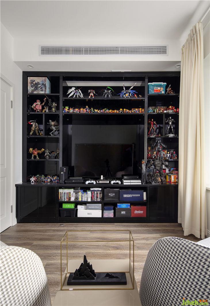 游戏室:高冷的黑色钢琴烤漆柜,满柜都是男业主收藏的游戏人物模型摄影师说这个房间告诉大家一个道理“玩啥都要玩精了才能给人牛B的感觉”