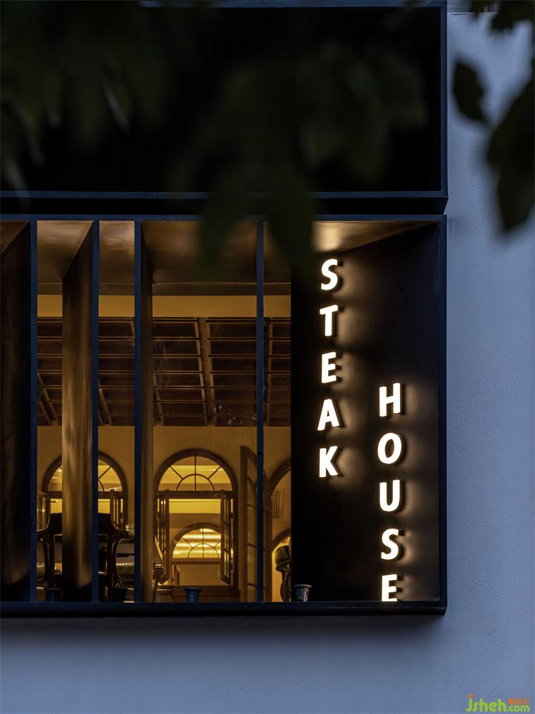 张家港,全国唯一一个获得联合国人居城市的县级市,同时也是国家生态城市。九牛一排是一家以高品质牛排为概念的西餐厅,2018年首家餐厅在张家港创办。店铺位于老城区暨阳东路主干道的南侧,餐厅设计商铺与主干道之前隔着一条5米左右宽的绿化带,十几年的老樟树,繁茂的枝杆及树叶遮挡着行人的视线,如果不是熟客,这家已经在此经营多年的口碑老店光凭外观是很难被人注意到的。