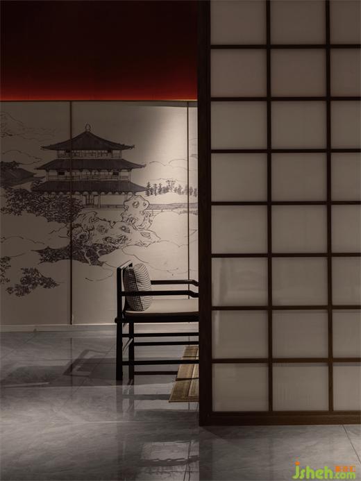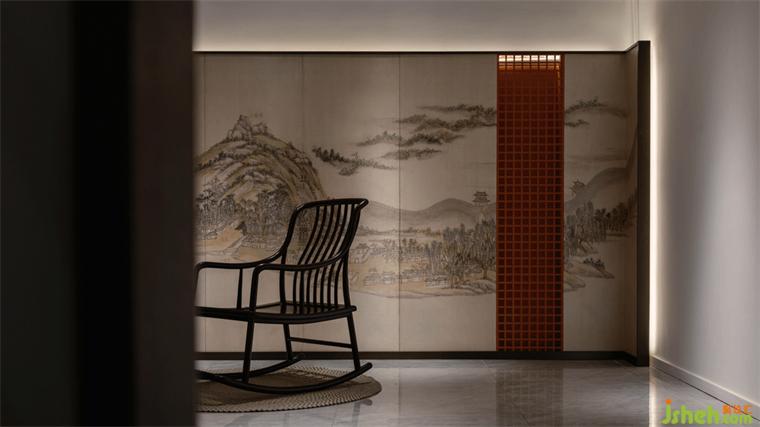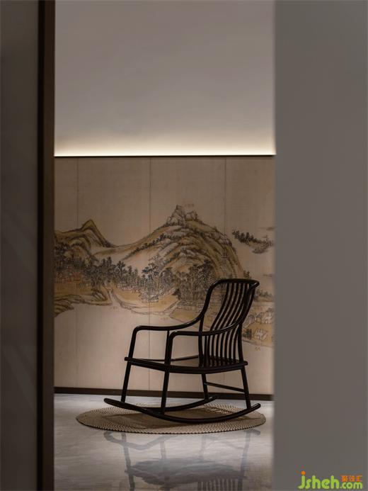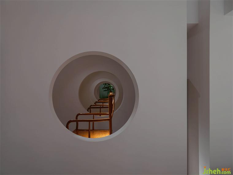 “线构”是设计师为展厅定下的第三个主题。红木家具采用榫卯斗合,苏素明式非遗传承馆设计在结构方面不用钉,不用胶,自成一体。每一件都像是一组精典的建筑组合。