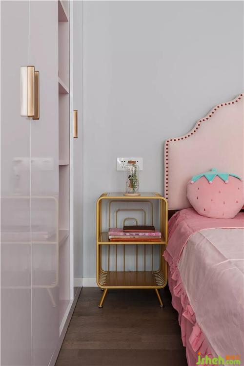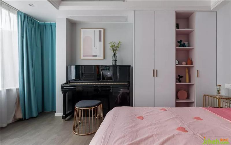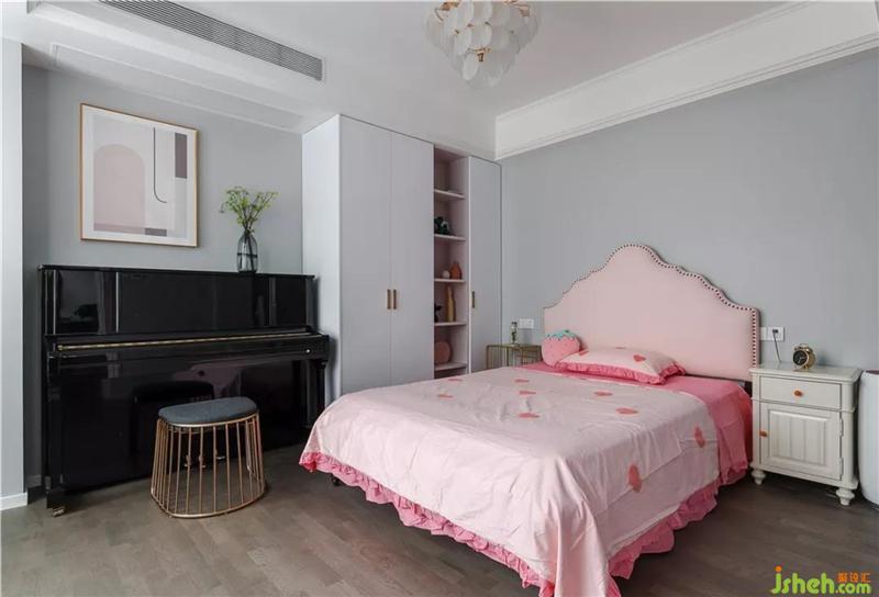 摈弃传统认知的鲜艳色彩,女孩房采用素雅的浅色为主色调,床具则用温婉可人的粉色系,让可爱与优雅成为房间的焦点。衣柜的中间预留出专属的空间,黑色的钢琴弹奏出美妙的音符送入其间,记载小女孩童年的快乐成长。