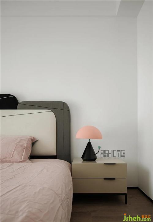 柔软,圆弧的软包高背床,童趣的小台灯,可爱,活泼,简单纯粹。
