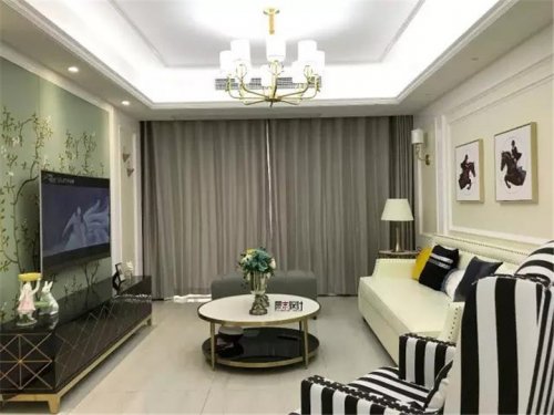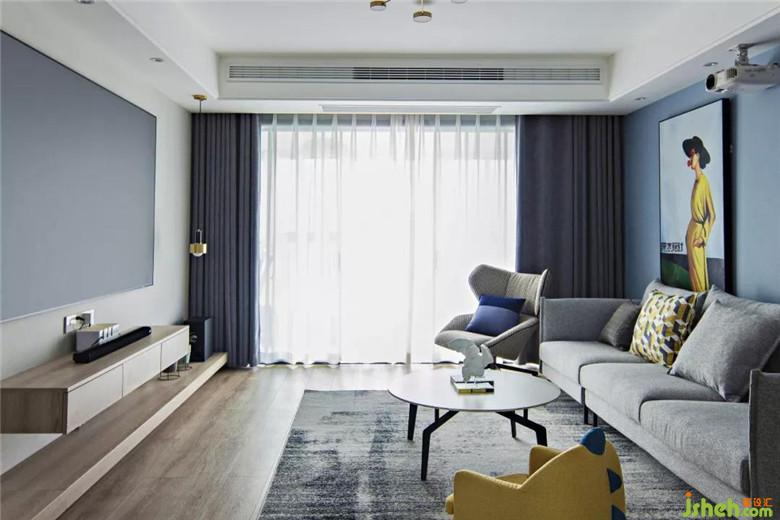 浅灰墙面,装修公司搭配上成套的软装饰品,营造出清爽与通透感。
