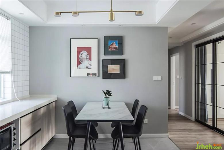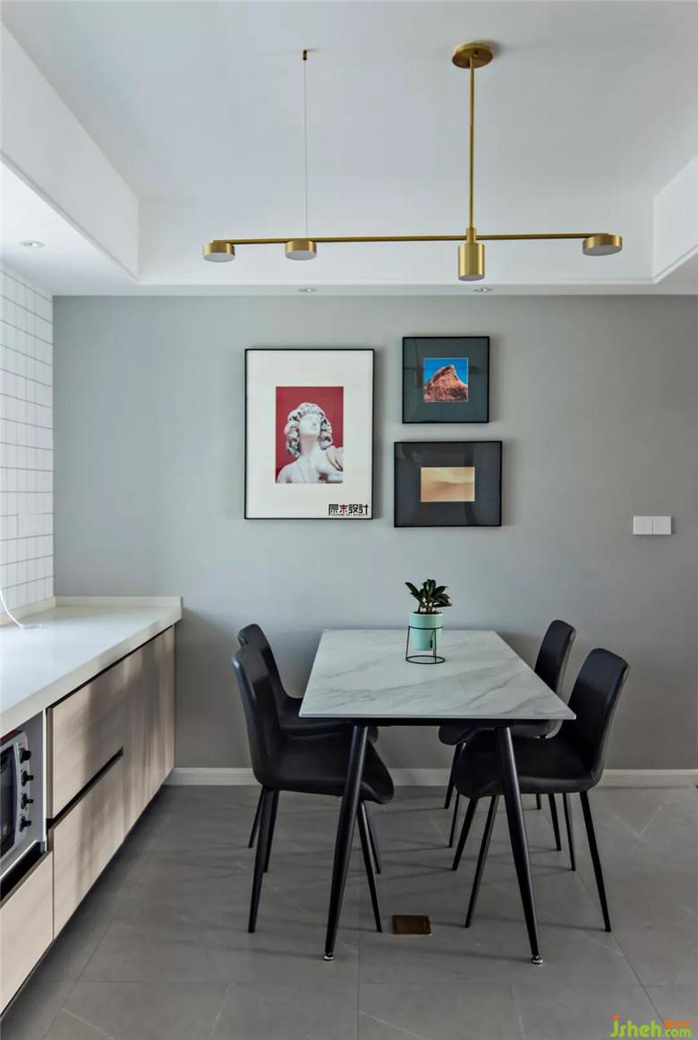 餐厅与厨房的空间视觉延伸性可以一直扩展到过道区域,扩大了整体空间的调性。