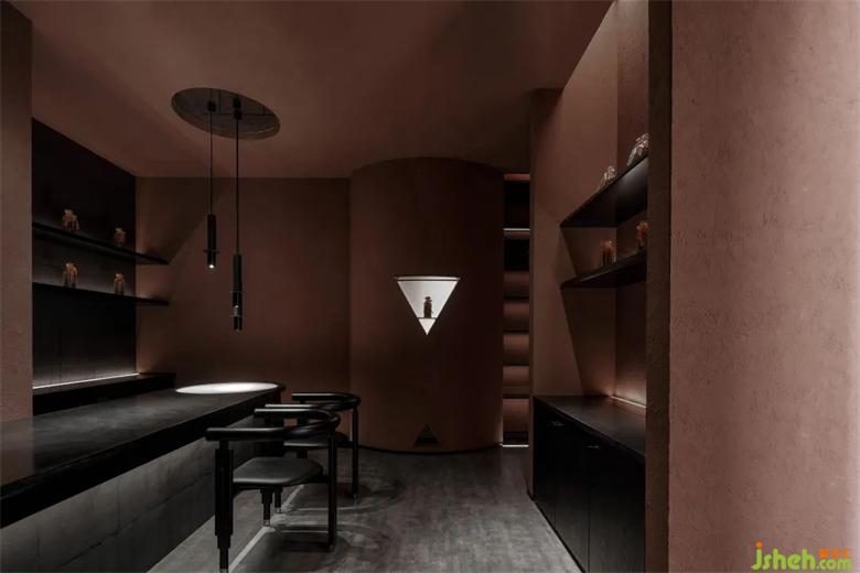 右边的玻璃砖,剔透晶酒馆设计莹,如同酒液流转,万物交汇融合,冰魂雪魄,烨烨生辉。拙与精,相互映衬,邀你看那壶里乾坤,古时梦境,岁月留痕。