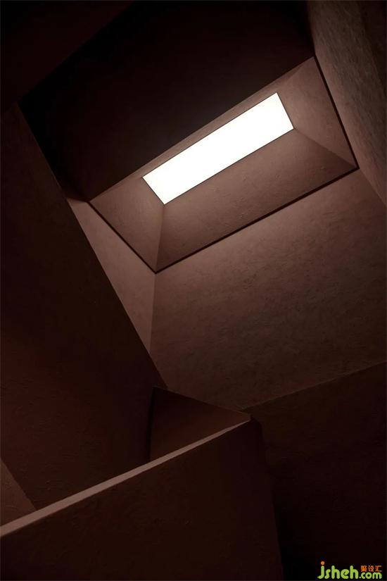 在远古劈开的洞穴中行走,天光散下,穿透至室内,在不同材质上映照出熠熠光影,呈现饱含深度的立体质感。我们保留了这种最原始的关系,运用最纯粹的自然力量,将天光带到室内,光影交错,这是现代技术与自然的深切对话。