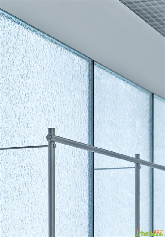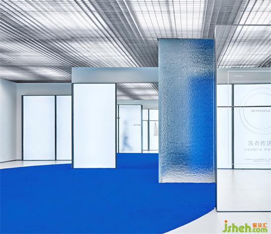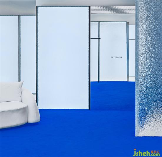 而在冰冻的深处是一片蓝色,FITTING ROOM呈现的是一块ICE CUBE ,水纹玻璃的盒子包裹着一个蓝色的体块,感受到能量、传递、纯粹,一种静谧的、无杂质、的游走状态。
