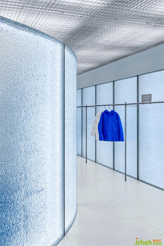 雪消又冰释,水波纹玻璃在四周环绕,一切都像是被添上了一层缥缈的滤镜,包裹感在此处扩散开来,上海专卖店设计特殊材质的肌理感带来平静与起伏的碰撞感。