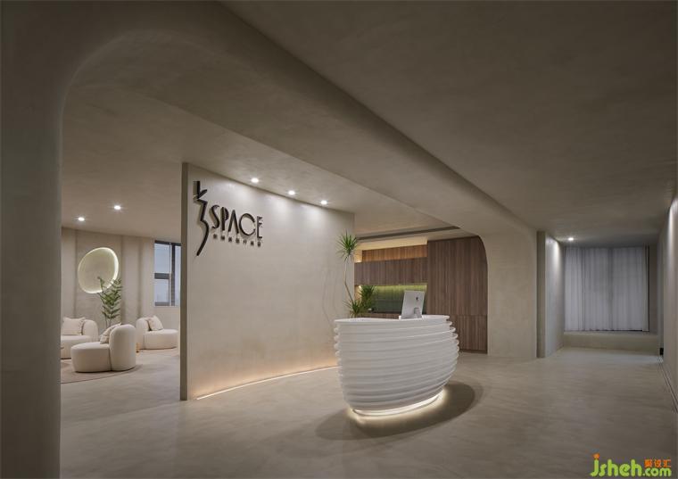 由百叶窗透射进的阳光,在玻璃制的桌椅间自由跳舞,在地面与墙面留下它的足迹,光影的流动感为空间创造着每日的惊喜。医美空间设计玻璃的座椅与案几如同流动的液体瞬间凝结,这种小面积的现代感为木与石的裸色增添了新的生机。
