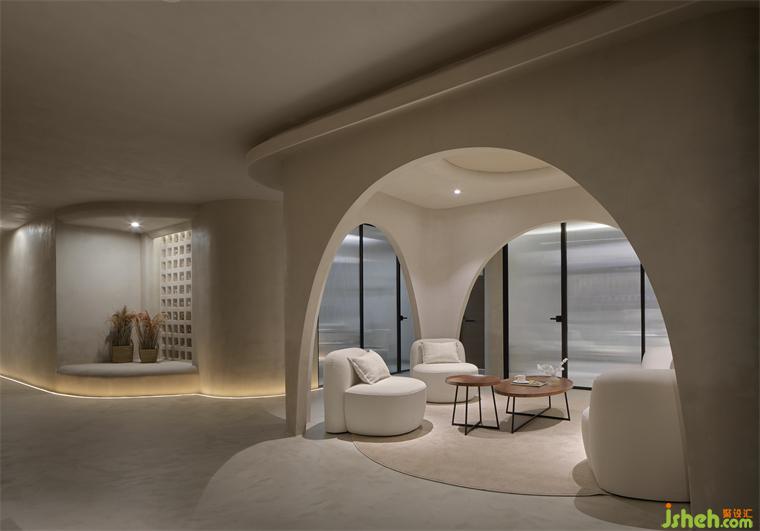 自然感与柔和感,无疑要求空间格局必定是开放与流动的。装修设计入口处的精致设计便为这种体验做了序,又或者更像一道引人入胜的“前菜”。由此进入空间内部,便会自然而然地被这种精神气质所包裹。