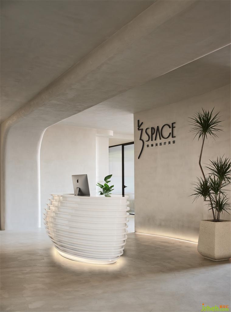 辅以一棵自由生长的绿植盆栽,也成为初临空间的视觉焦点,又似是以一种和谐的方式欢迎来客,仿佛在这座城市与空间中间建立起一种平静和与自然的联系。医美空间设计地面灯带设计内敛克制,又实现了功能性。