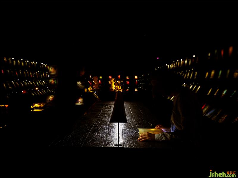 「这不是一间黑暗的书店,而是一间一切都消失、只有书本,让灵魂能够阅读的书店」设计师朱志康这么说。进入这个空间,完全颠覆以往对书店的既定印象,视线所及只有书本飘浮在空中,看不见空间界线,也看不见他人的面容,只有隐约的轮廓;没有了这些框架,人们可以放松做自己,用最真实的灵魂来找到一直以来渴望阅读的书籍。店铺设计