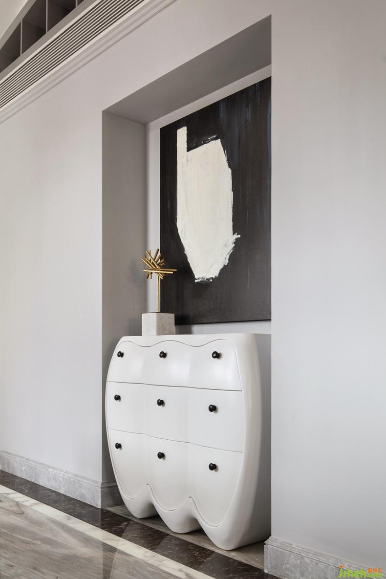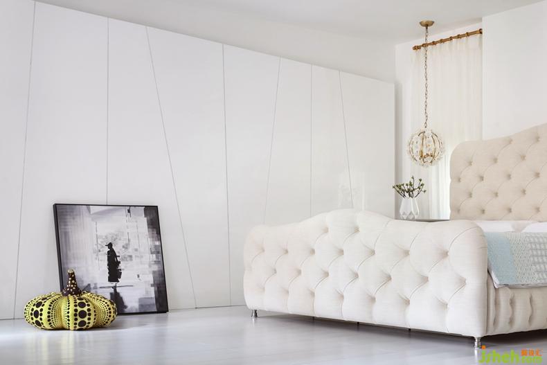 奶白色的柔软与草间弥生的艺术品《南瓜》,让卧室自然而然成为一幅纯粹的艺术作品,干净透亮的视觉效果,将极简主义美学发挥到完美。