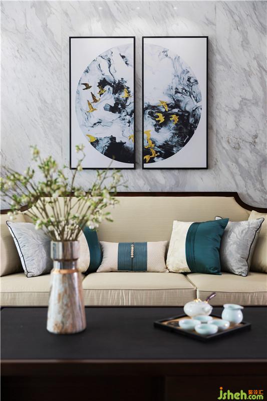 材质说明:家具主要采用桦木,局部使用石材,皮艺、布艺软包等材质,布艺上采用棉麻、绒布、皮革等进行空间穿插,使整个空间在色彩与质感上形成高度统一,通过材质之间的搭配,再融合视觉、触觉等感官体验,将新中式的气氛绵延在整个空间里。深圳装修公司