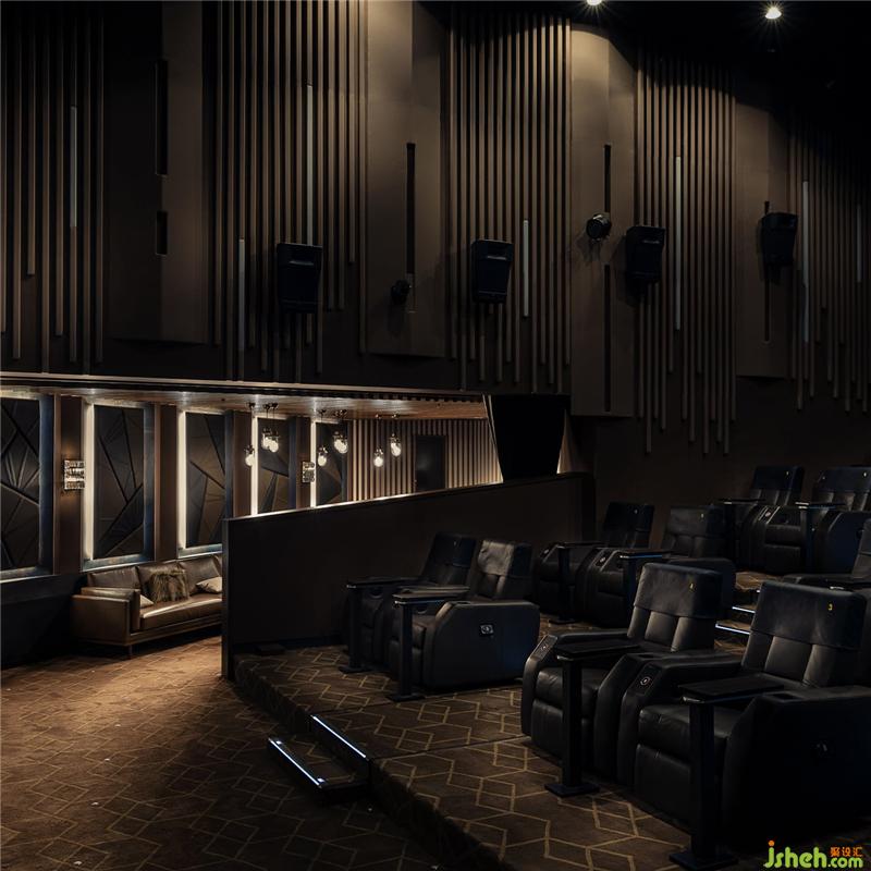 更显私密的Black Box ,承担了高端个性化服务功能,空间右侧的独立休闲区,突破了固定座位的束缚。特别设置的沙发、衣帽架、洗手间,为私人聚会带来更轻松自在的体验,在此基础上,公共空间与私人空间的边界也进一步消融。电影院设计