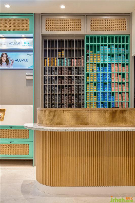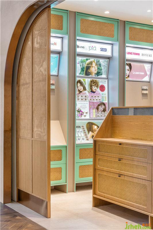 开放式的入口及流线型布局让空间更一目了然,不同颜色与风格的隐形眼镜排列井然有序,通过产品外观本身颜色来构建店面色彩体系,既融入品牌基因让品牌更深入人心,又为店铺带来更多的展示面的同时,也让经过的消费者,不需要付出更多的行为与动作成本,直接到达店内选购商品,提升获客能力。