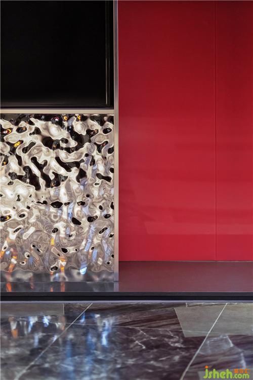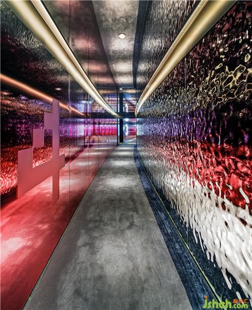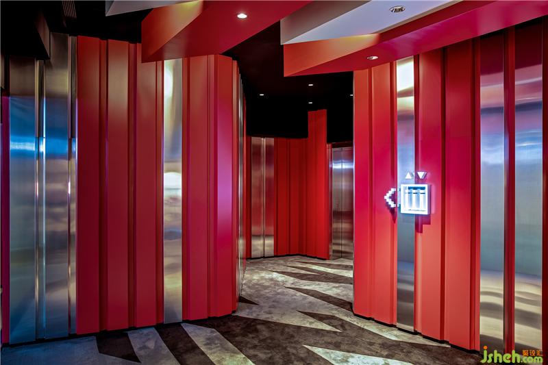 影厅走廊运用大量反光物料,如金属波浪板、灰镜及铝板,令画面更加丰富,从视觉上改善走道空间狭窄的问题。