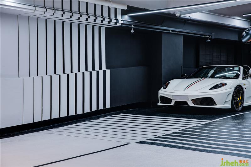 改造前:墙面是车库最常规的乳胶漆白墙,不耐脏且过于普通,当那些价值不菲的艺术品在此停泊时,无论多出色的外观与性能都只能流连在着平庸的场景中。