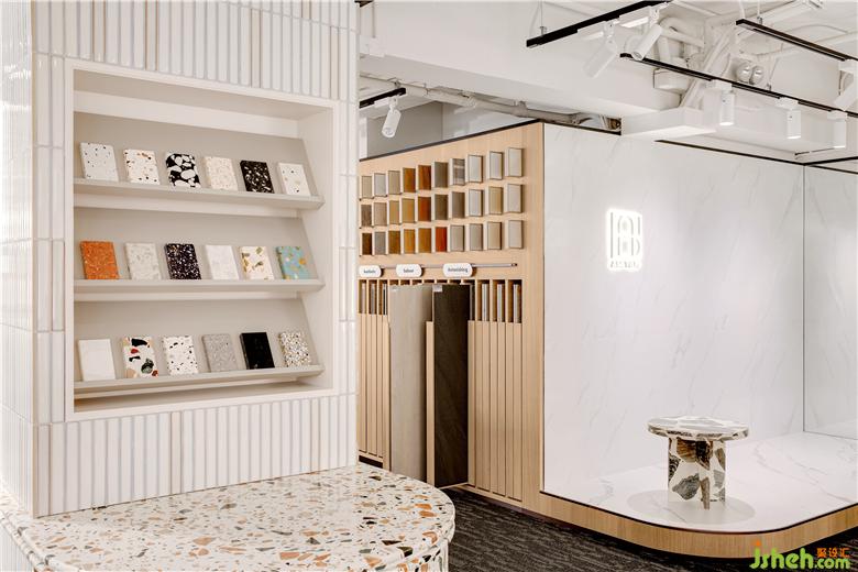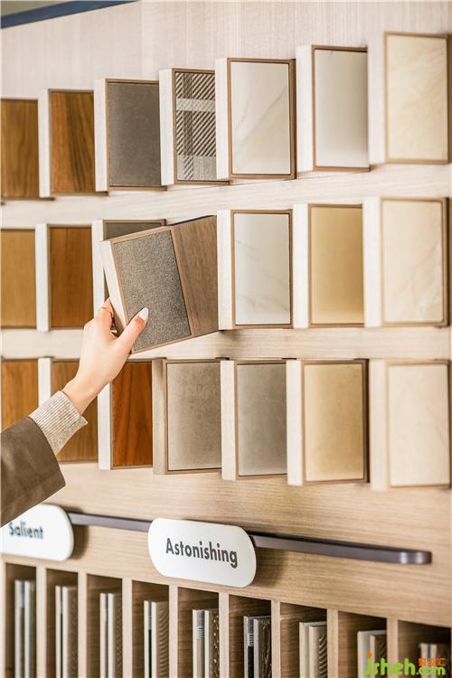 The design team also built tile "bookshelves" for smaller tiles, so that the samples can be neatly displayed on the display shelves like books, and as soon as you approach, you can carefully observe, read and touch its color, pattern and texture.