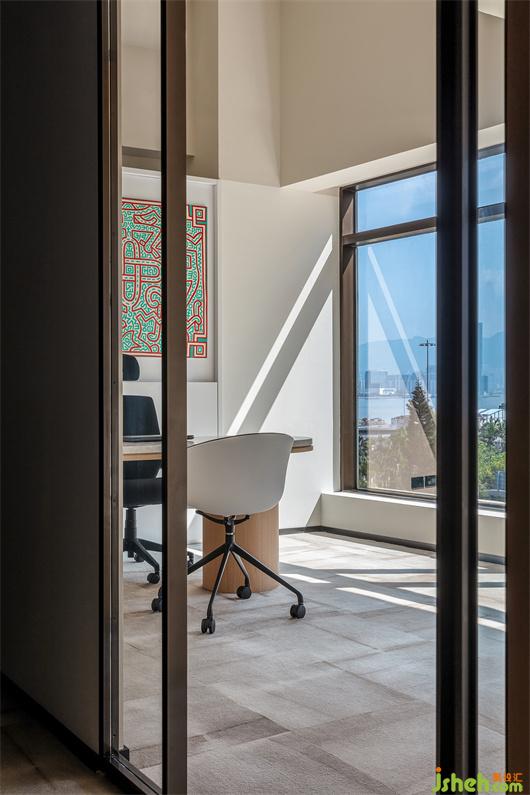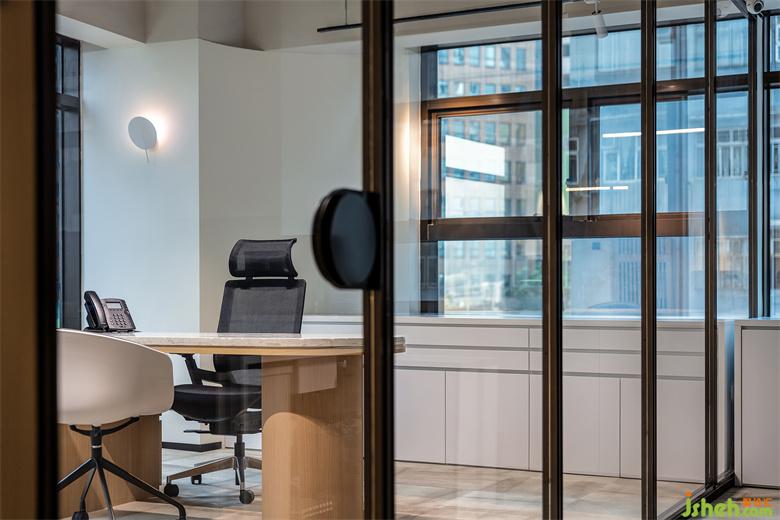 最后,在私密办公区中,设计师用大面积玻璃窗将自然光源引入室内,透明的玻璃门,让整个区域视野更为开阔。