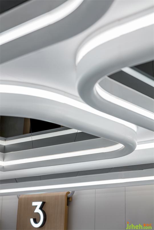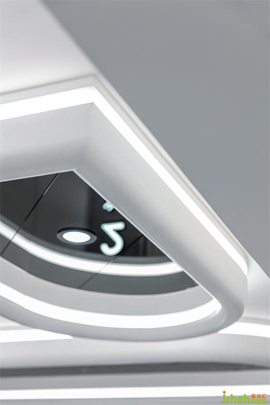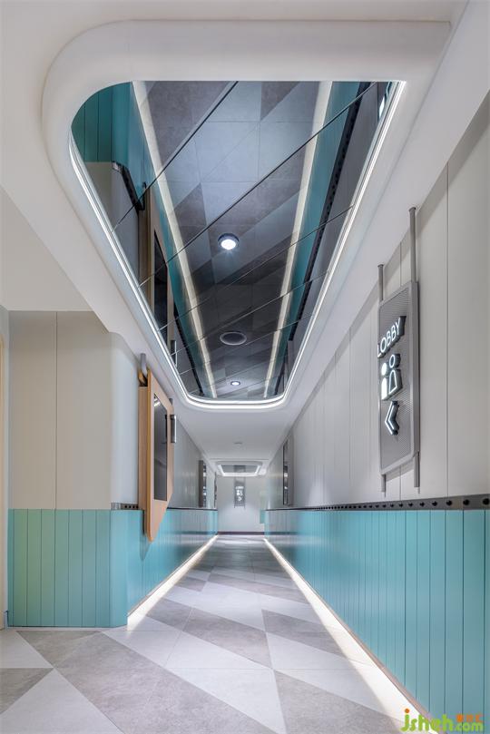 水滴状镜面天花贯穿整个公区,首先从视觉上解决层高低矮问题,同时造型与露营车透明棚顶呼应,仿佛打开它就能探出身子去大声呐喊、与风和自然相拥,以空间唤醒感受。