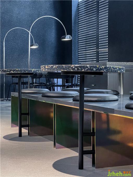 与此同时,店中的不同角落,如陈列柜上、墙面上,甚至灯具上,餐厅设计都展现了一个斜杠图案,象征着品牌就如一个“SLASH”一样,为消费者带来多样可能。